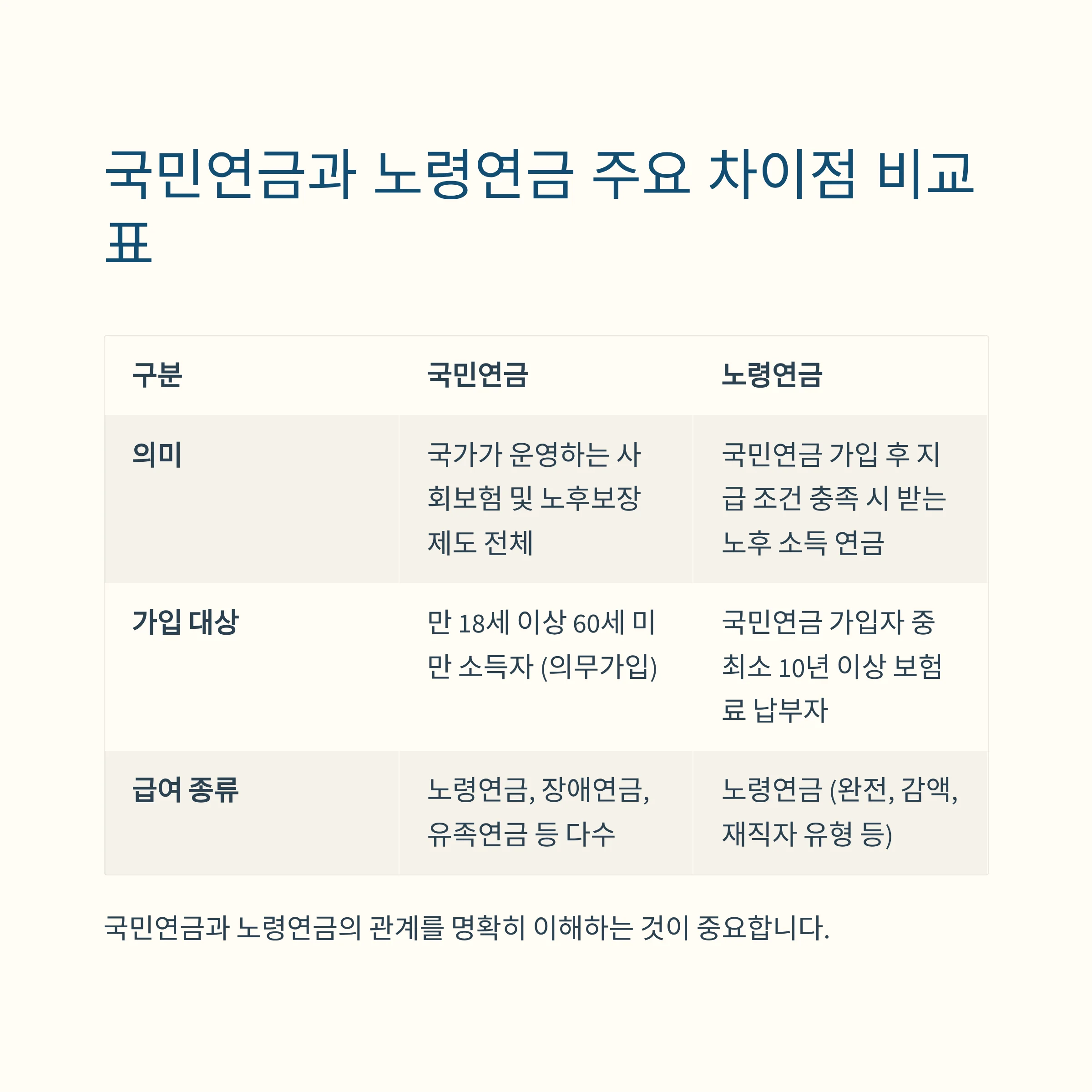 노령연금과 국민연금 주요 차이점 실제 비교