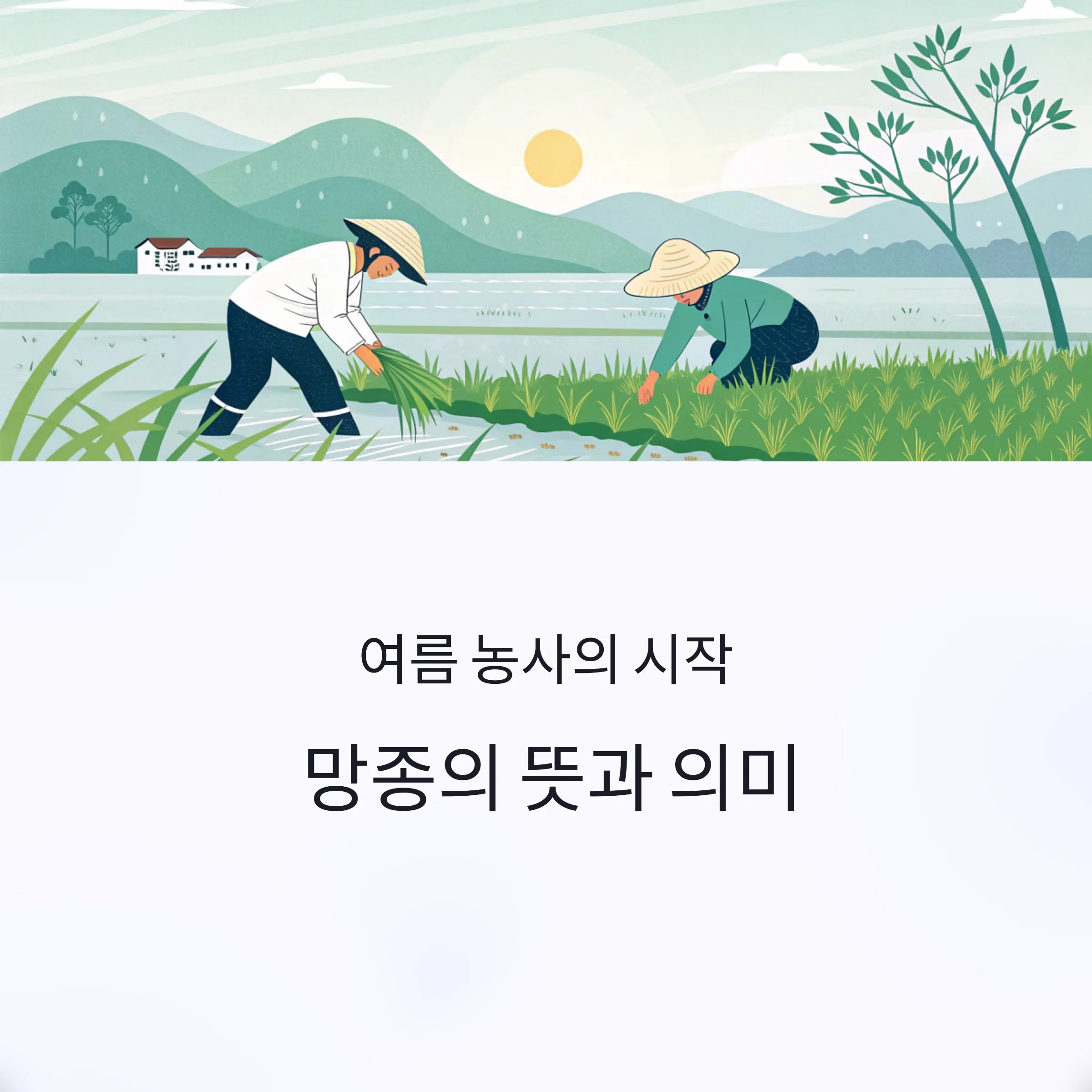 망종은 24절기 중 아홉 번째 절기로, 보리가 익고 모내기를 시작하는 시기입니다.