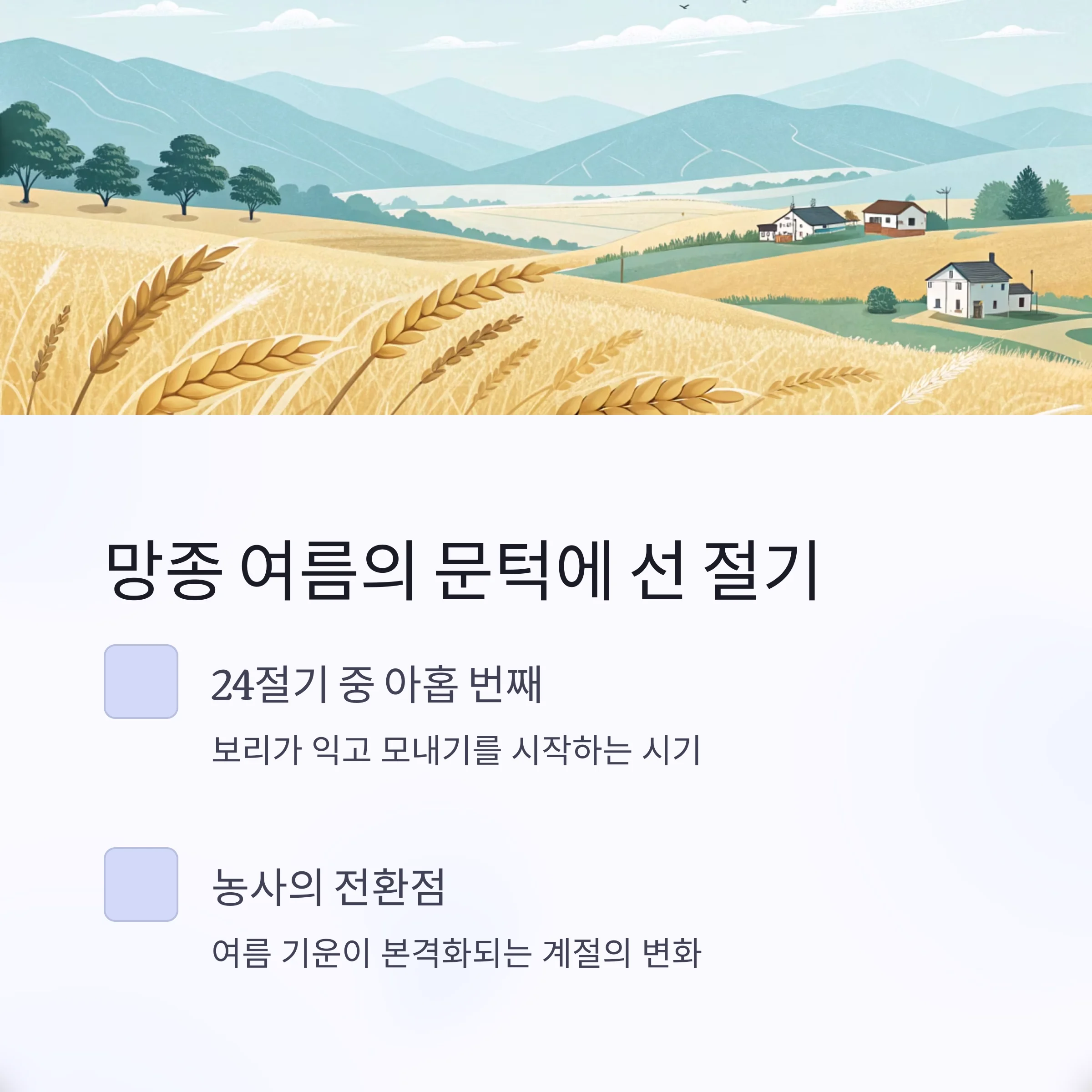 망종은 단지 절기가 아니라 삶의 리듬을 조율해주는 자연의 시계입니다.
