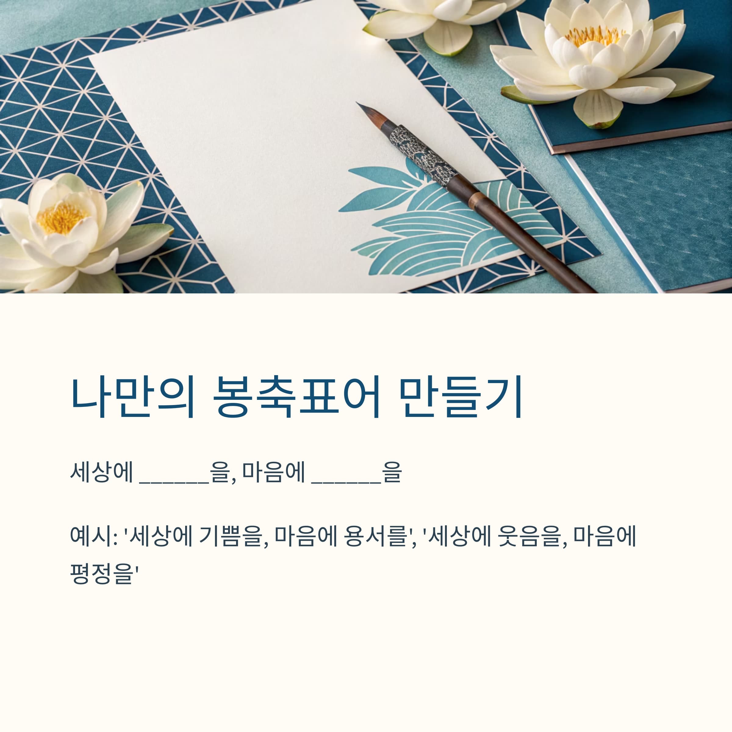 지금부터 나만의 봉축표어를 만들어보세요.