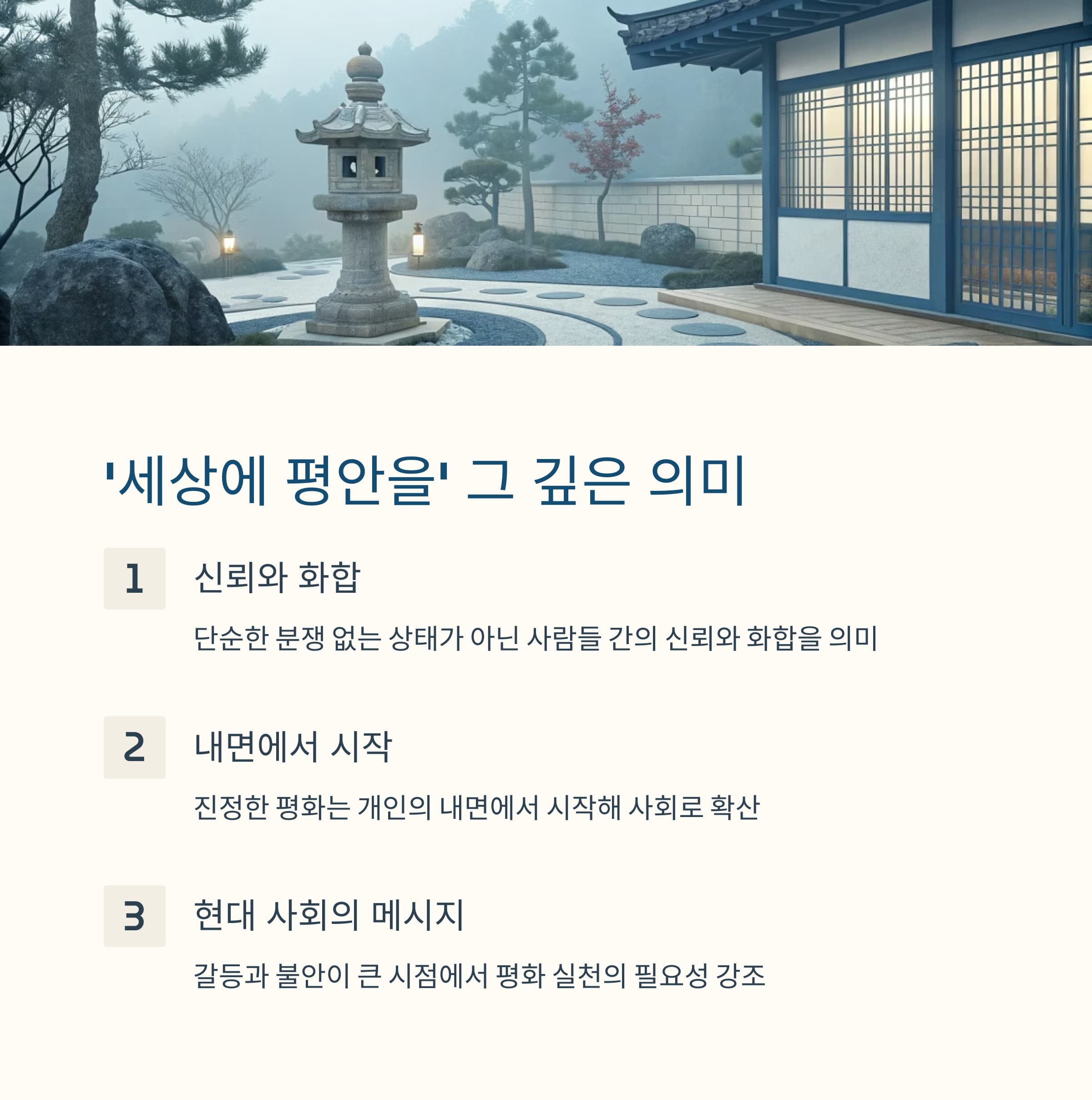 내면의 고요함과 균형이 개인을 넘어서 사회 전체로 확산되면서 비로소 진정한 평화가 실현됩니다.