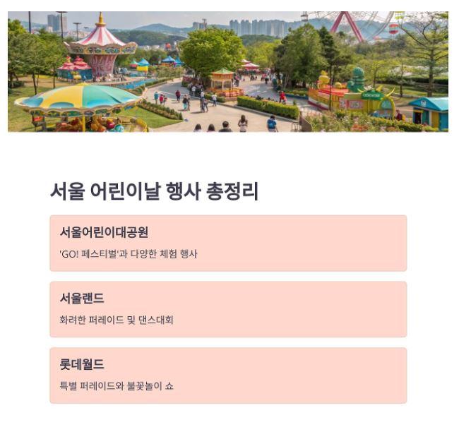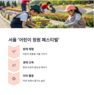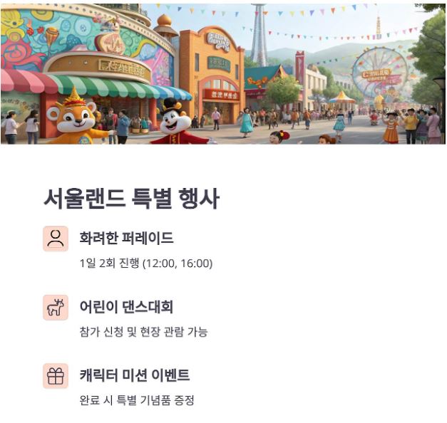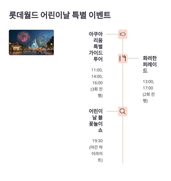 - 인기 행사장(서울대공원, 롯데월드, 어린이대공원 등)은 온라인 사전 예약이 필수이며, 조기 마감에 유의하세요.