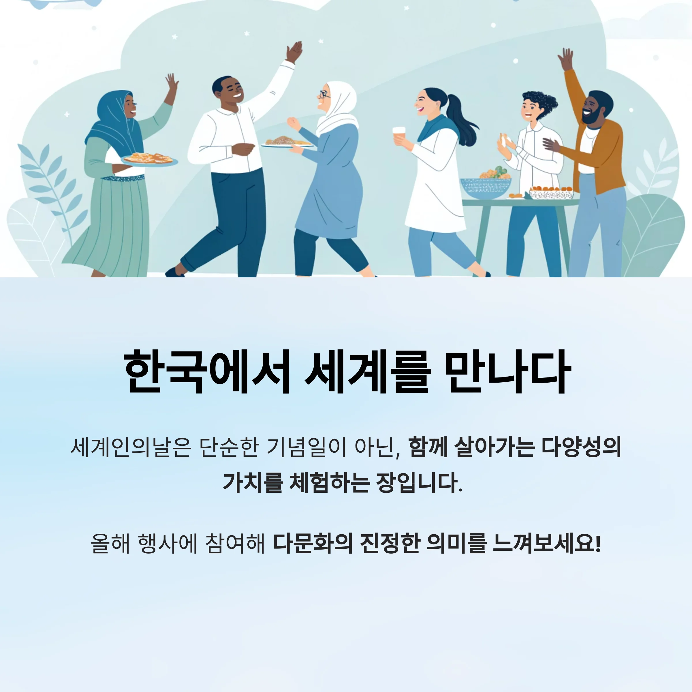 세계인의날은 단순한 기념일이 아닌, 함께 살아가는 다양성의 가치를 체험하는 장입니다.