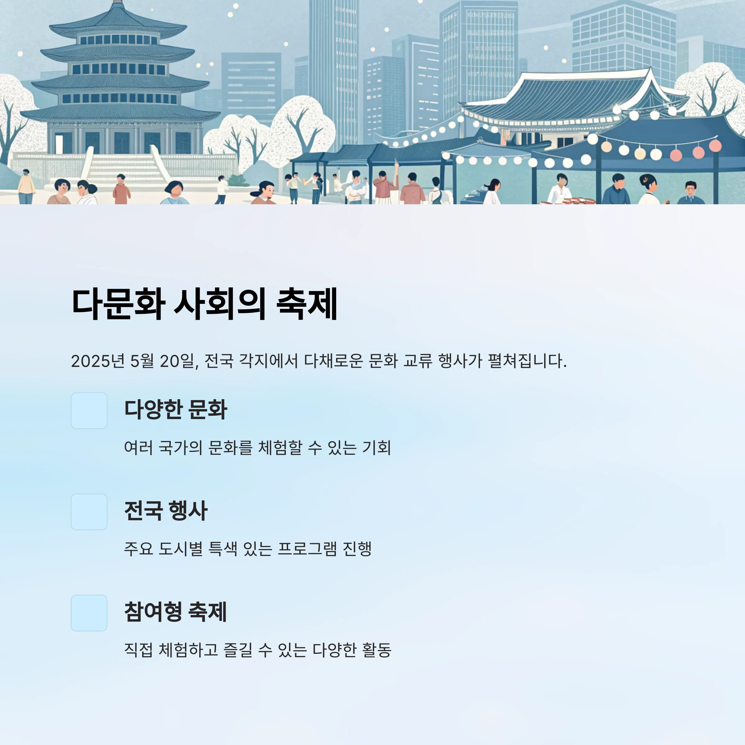 2025년 5월 20일, 세계인의날을 맞아 전국 각지에서 다채로운 문화 교류 행사가 펼쳐집니다.