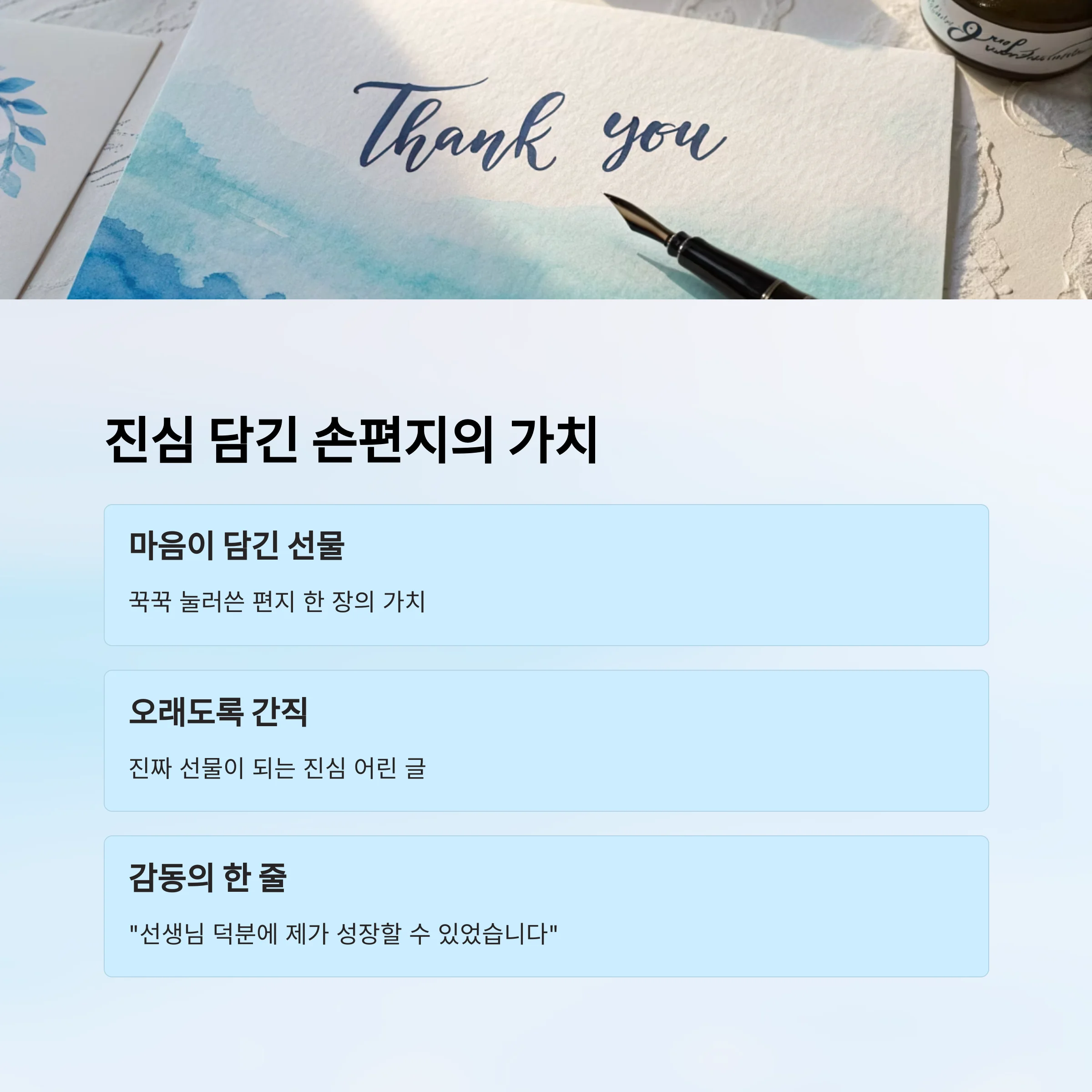 "선생님 덕분에 제가 성장할 수 있었습니다"라는 한 줄의 진심이 그 어떤 선물보다도 큰 울림을 줄 수 있습니다.