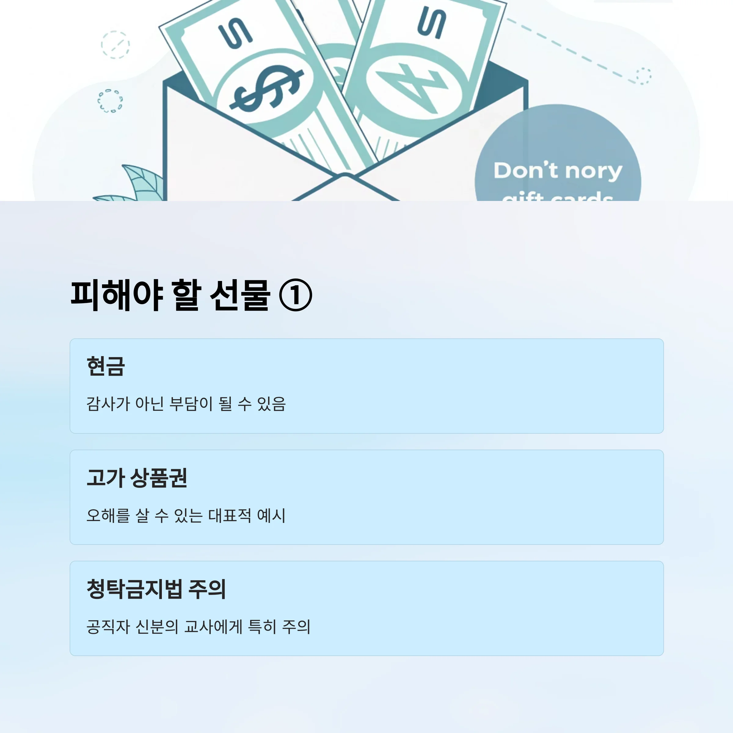 5. 피해야 할 선물 - 현금 및 고가의 상품권
