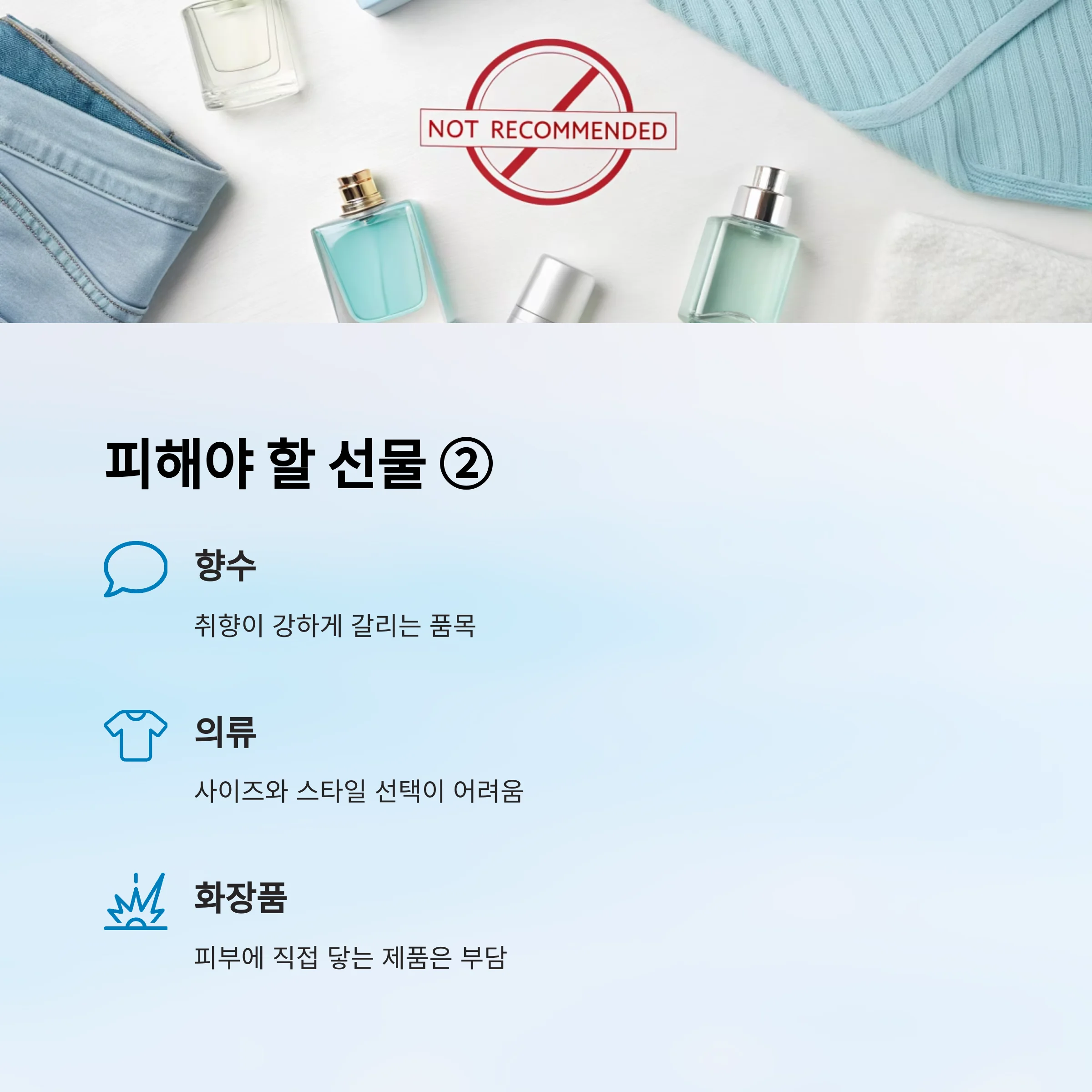 6. 피해야 할 선물 - 화장품 등 개인 취향이 강한 제품