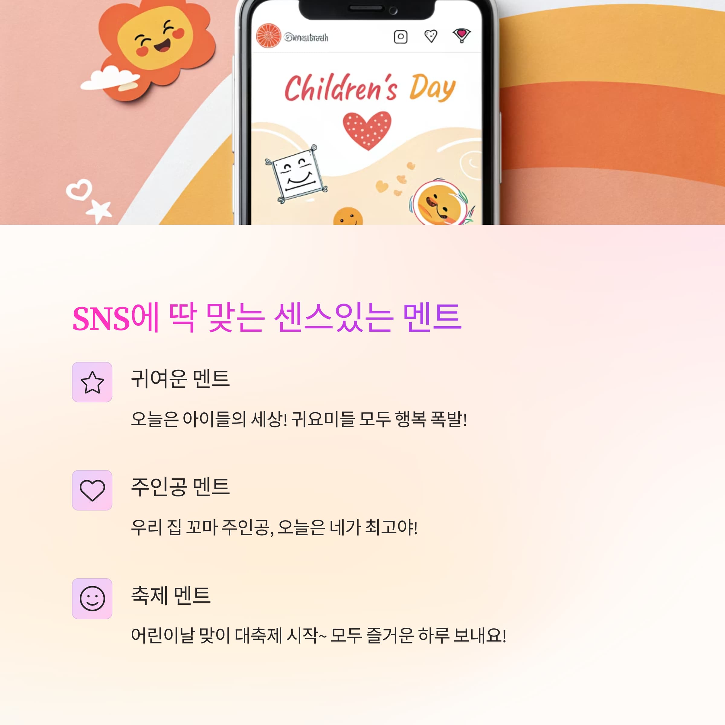 - "어린이날 기념! 오늘은 너를 위한 특별한 날!"