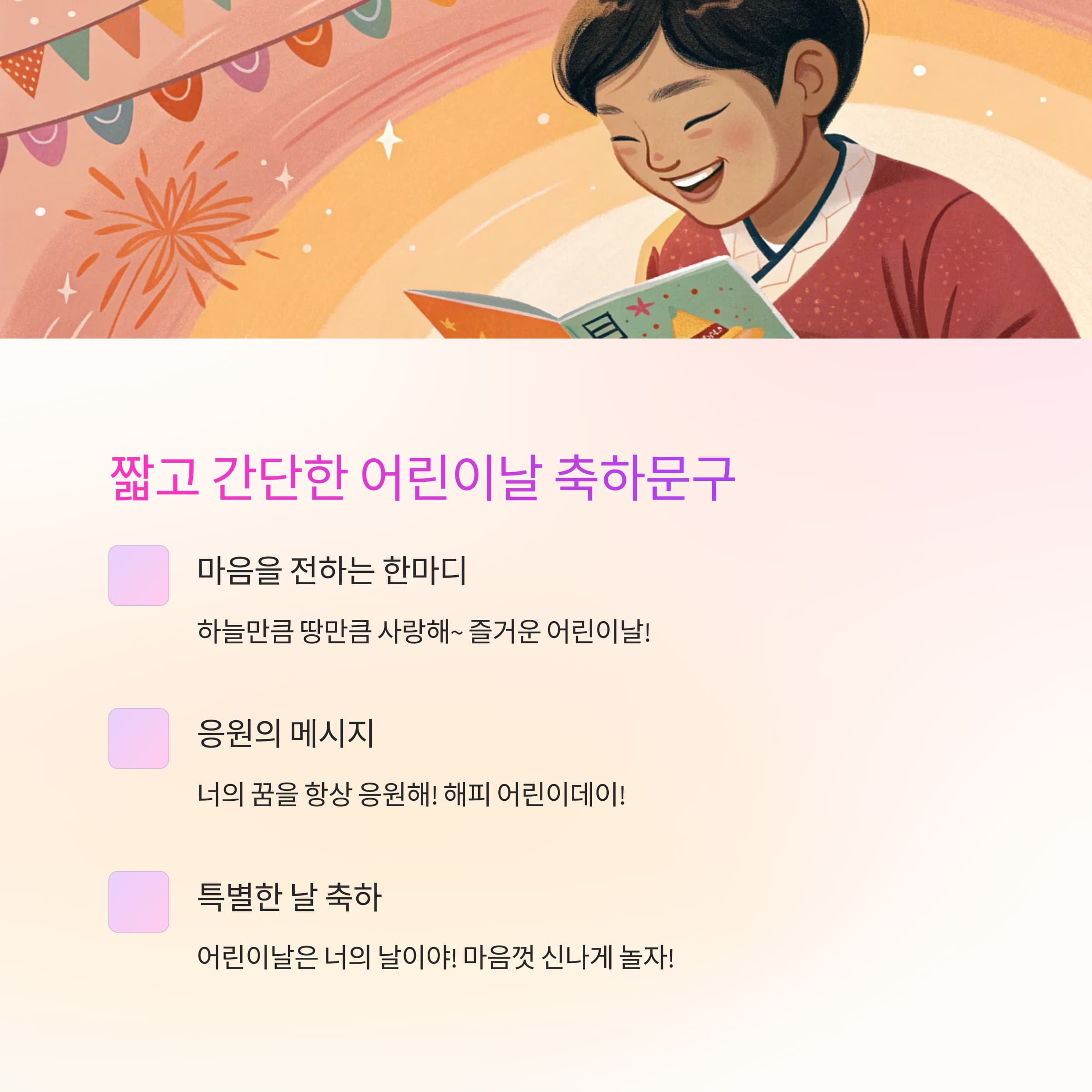 1. 짧고 간단한 어린이날 축하문구 10선
