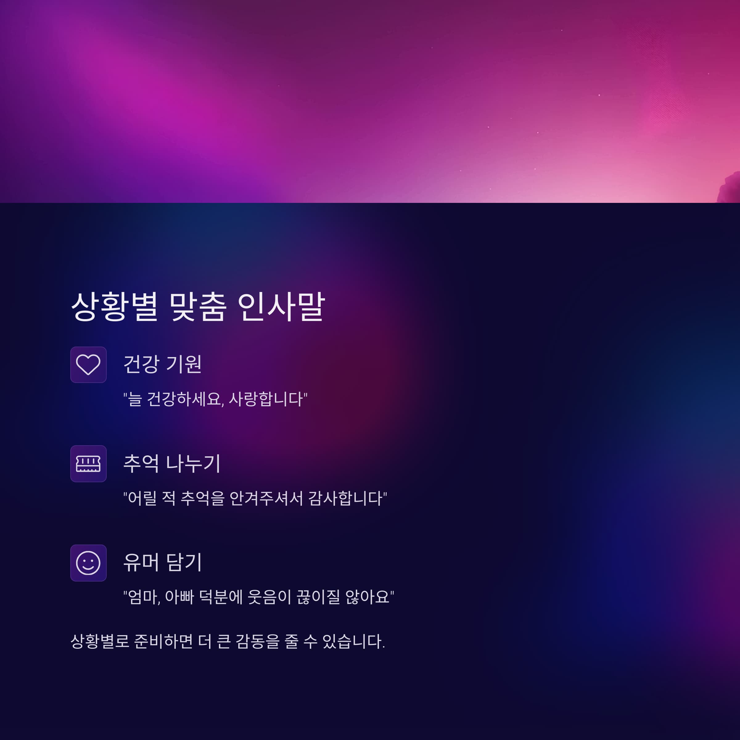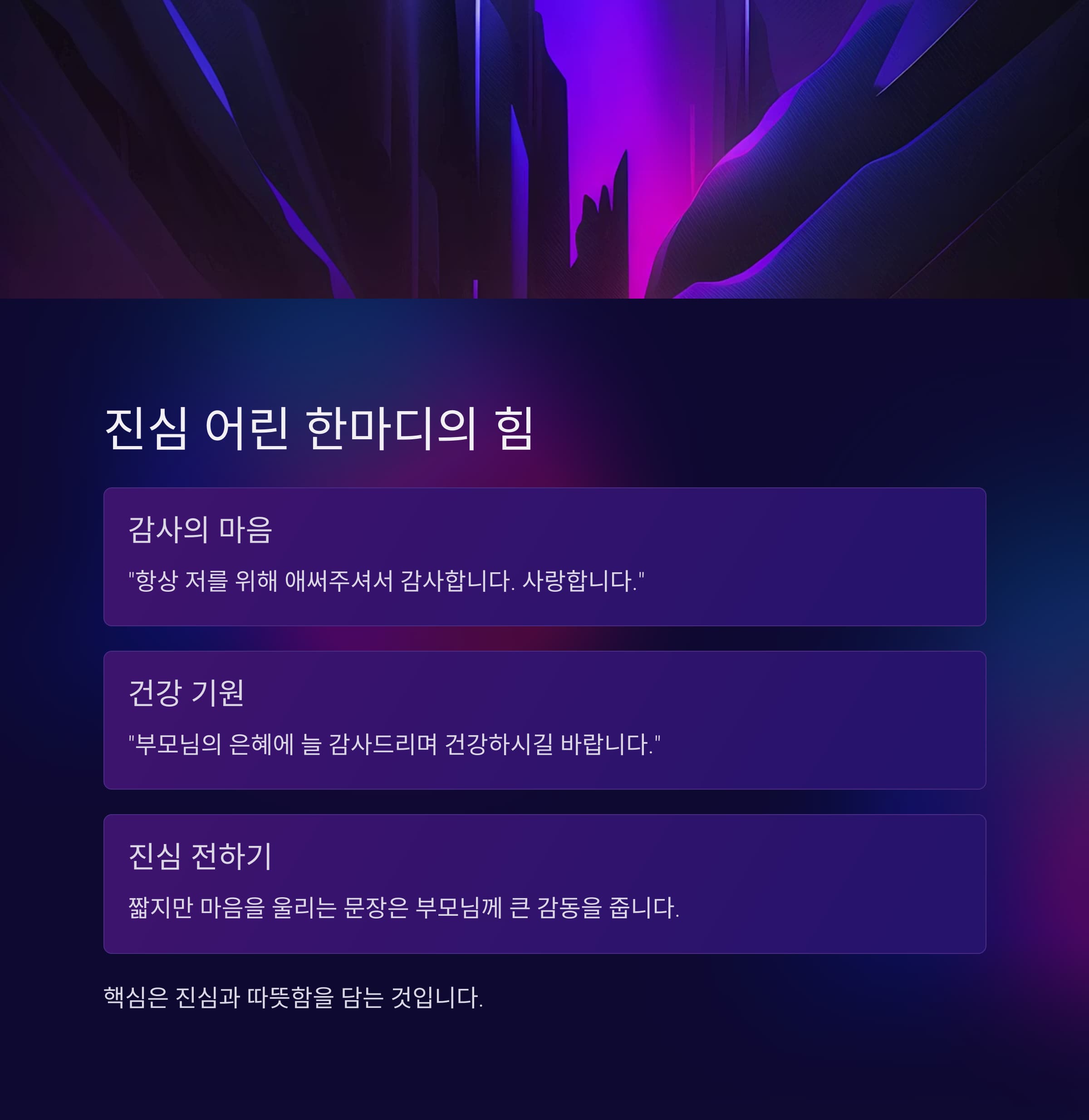 짧지만 마음을 울리는 문장은 부모님께 큰 감동을 줍니다.