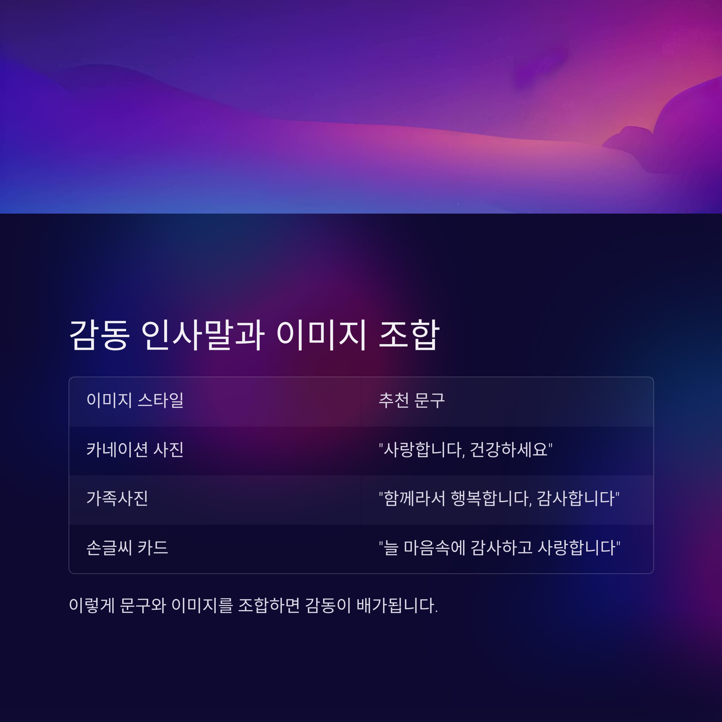 5. 감동 인사말과 이미지 조합 예시