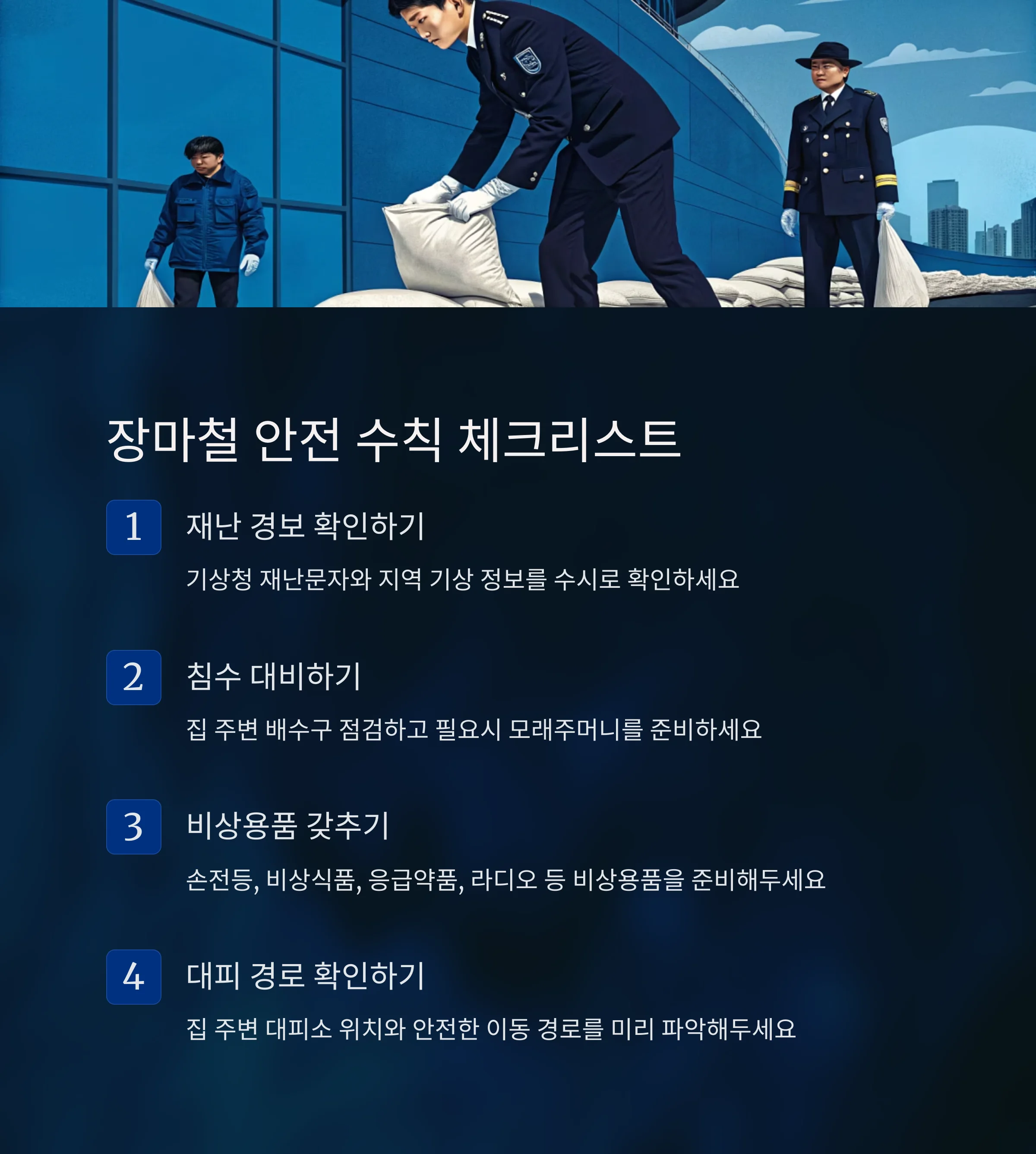 장마철을 안전하게 보내기 위해서는 생활 속 작은 준비가 큰 도움이 됩니다.