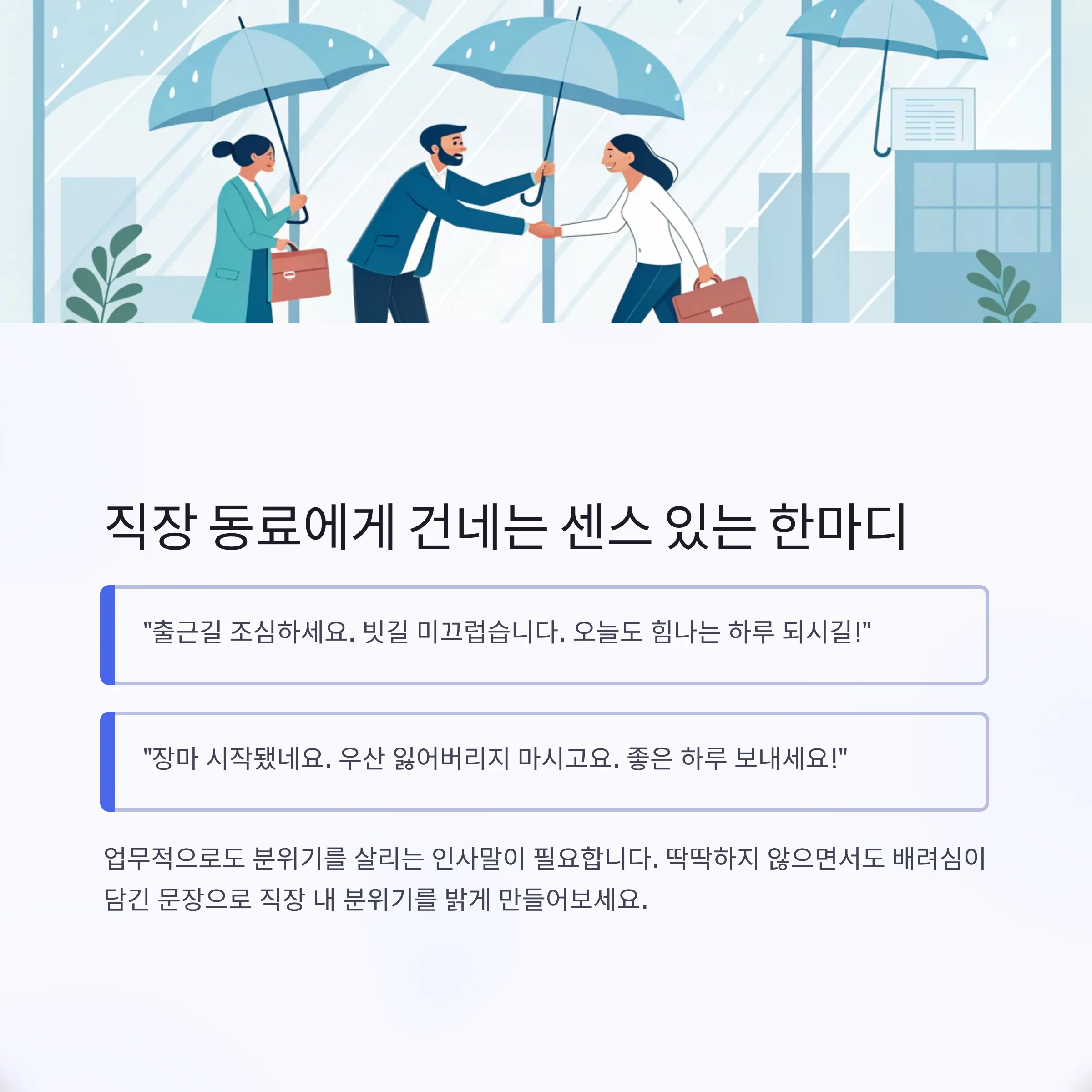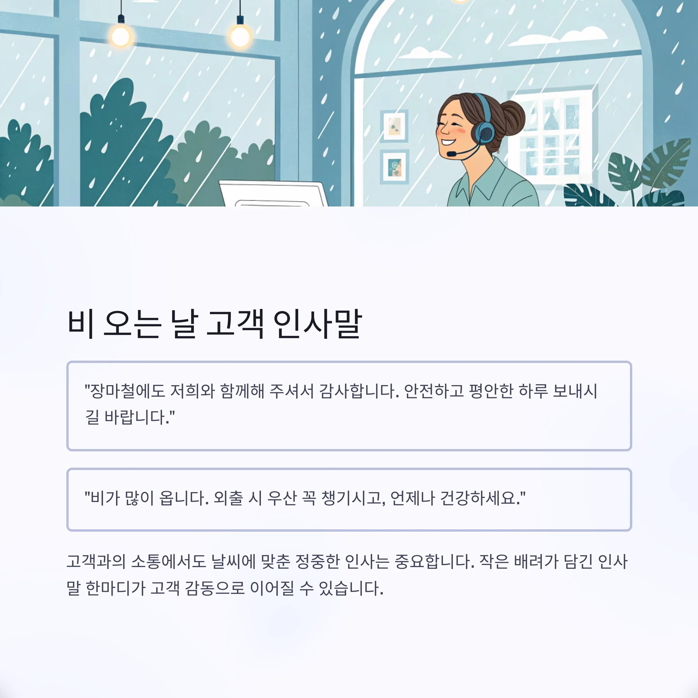 3. 비 오는 날 고객 인사말 예시