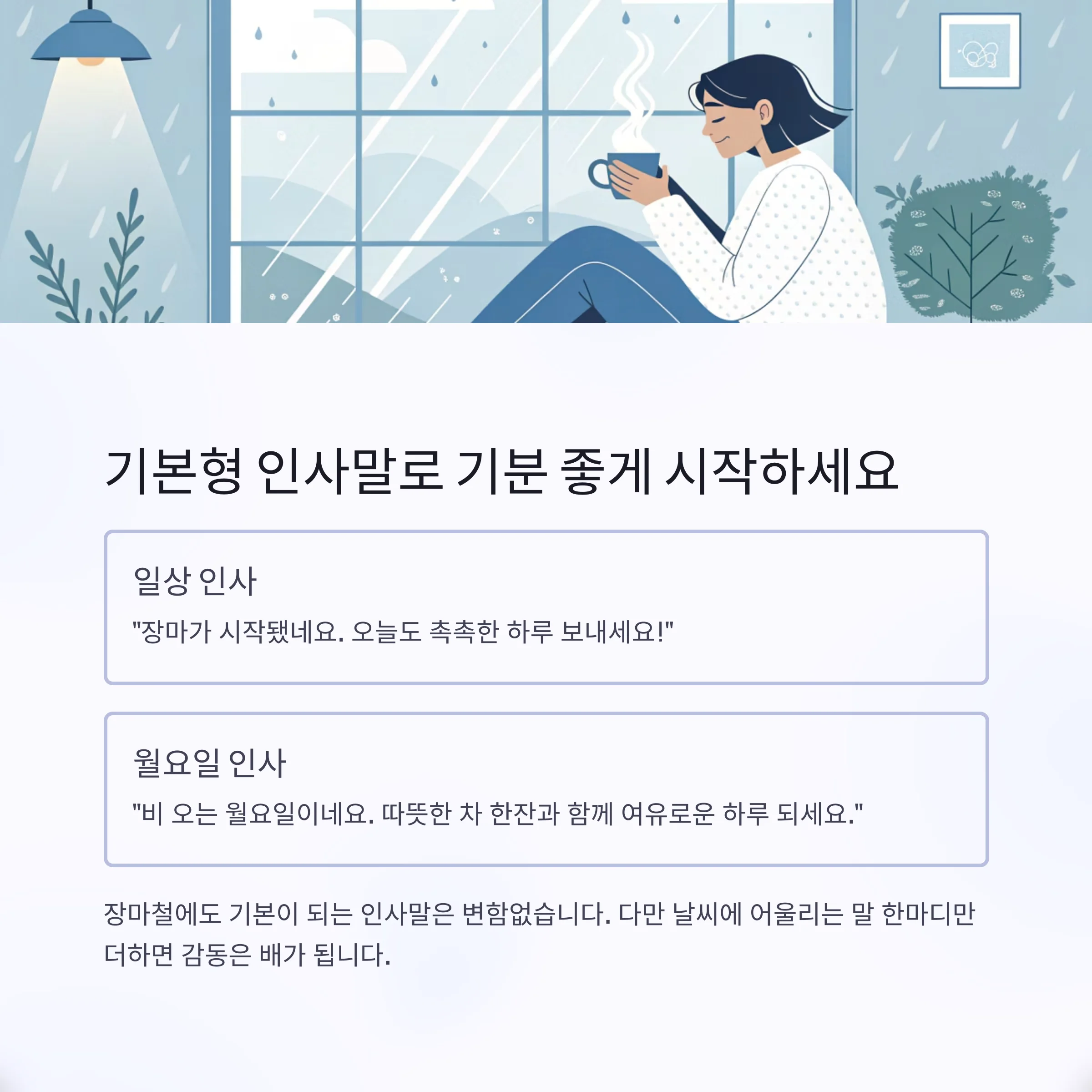 장마철에도 기본이 되는 인사말은 변함없습니다.