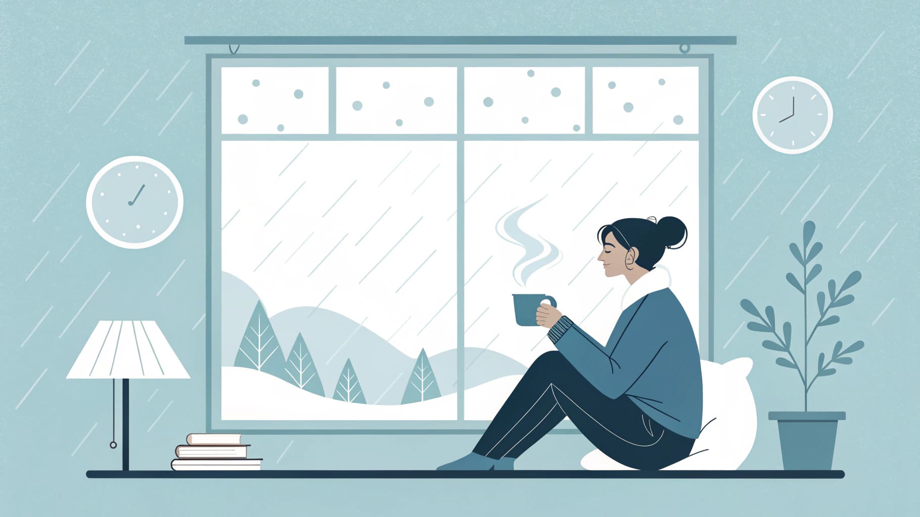 "비 오는 날엔 천천히, 따뜻하게."