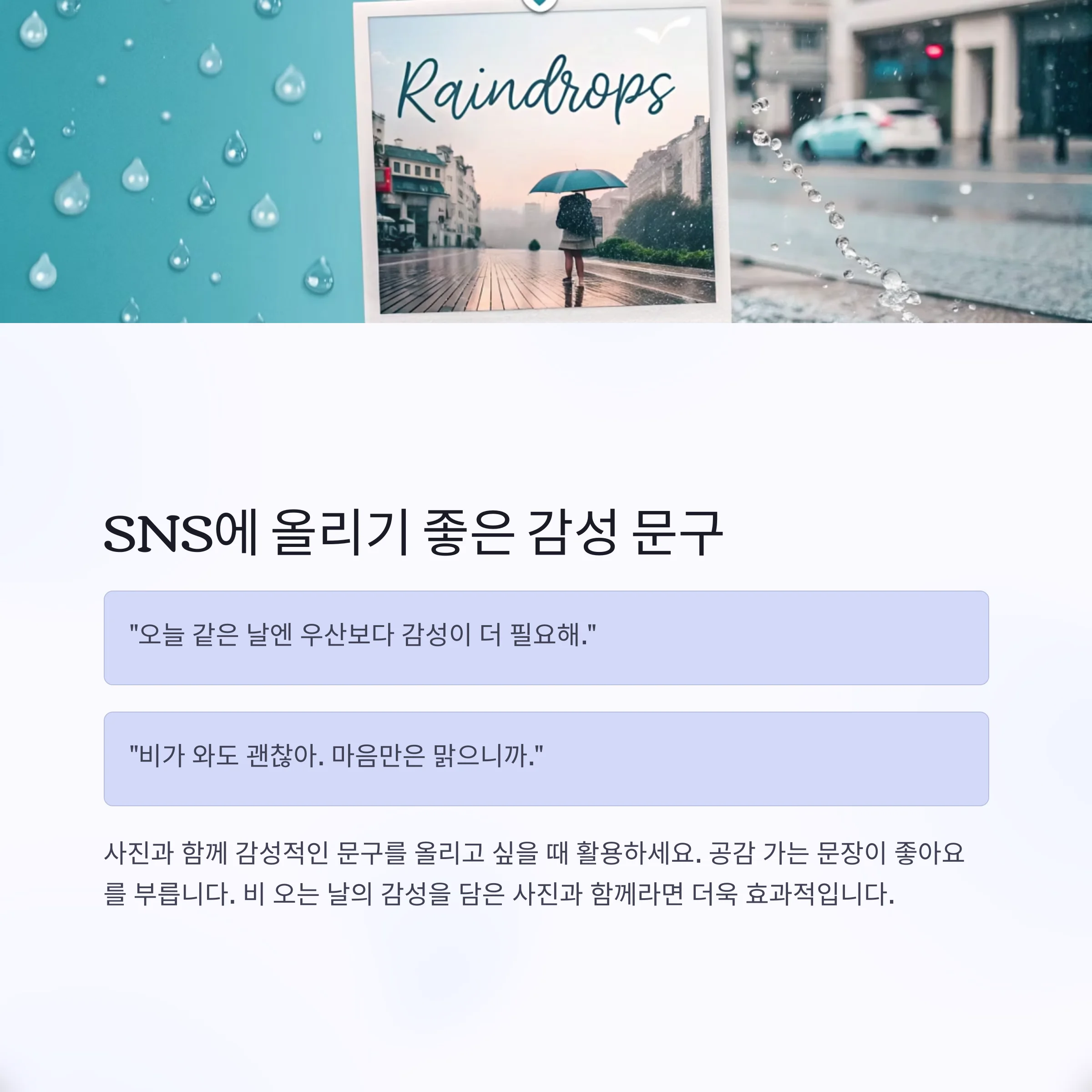"오늘 같은 날엔 우산보다 감성이 더 필요해."
