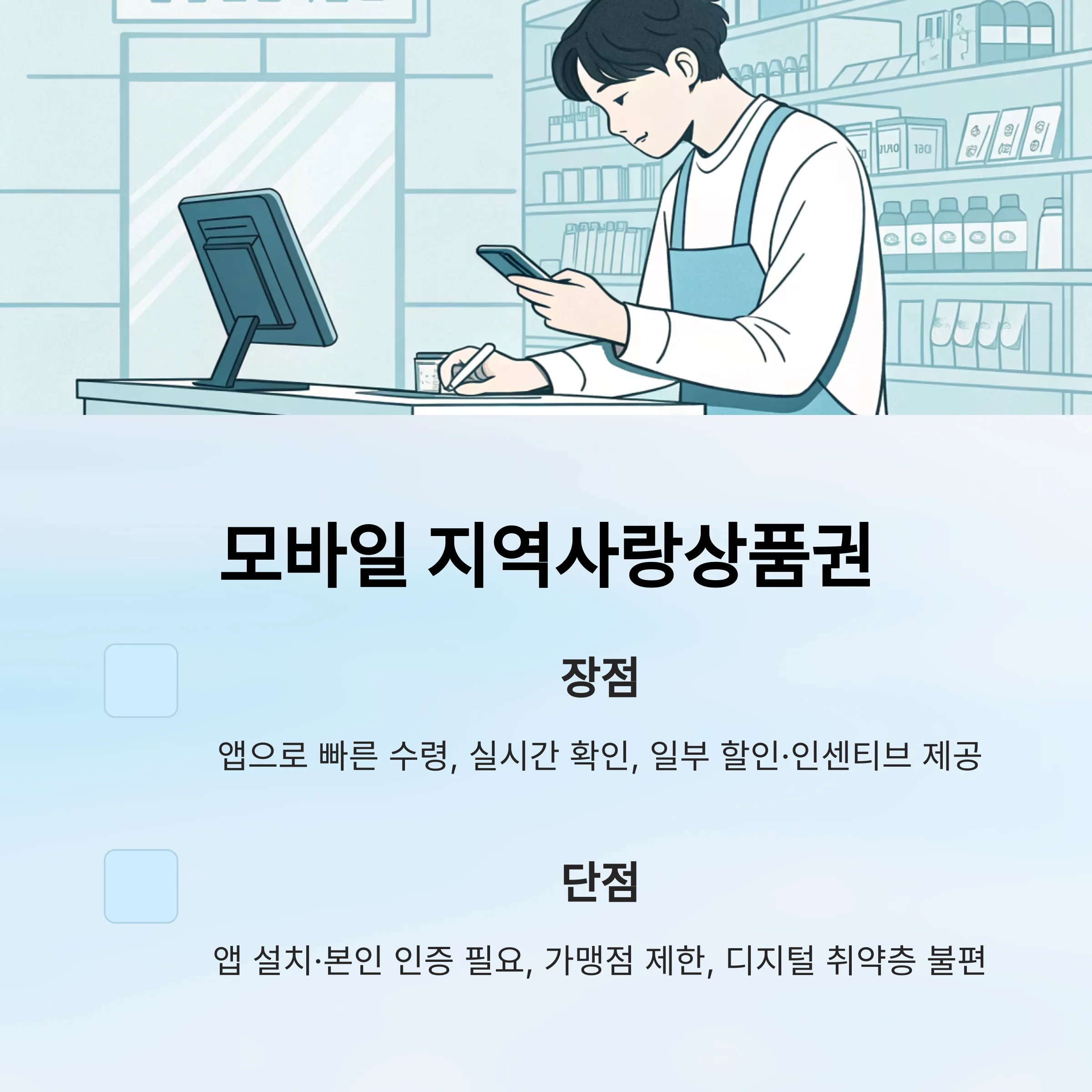 - 단점: 앱 설치·본인 인증 필요, 가맹점 제한, 디지털 취약층 불편