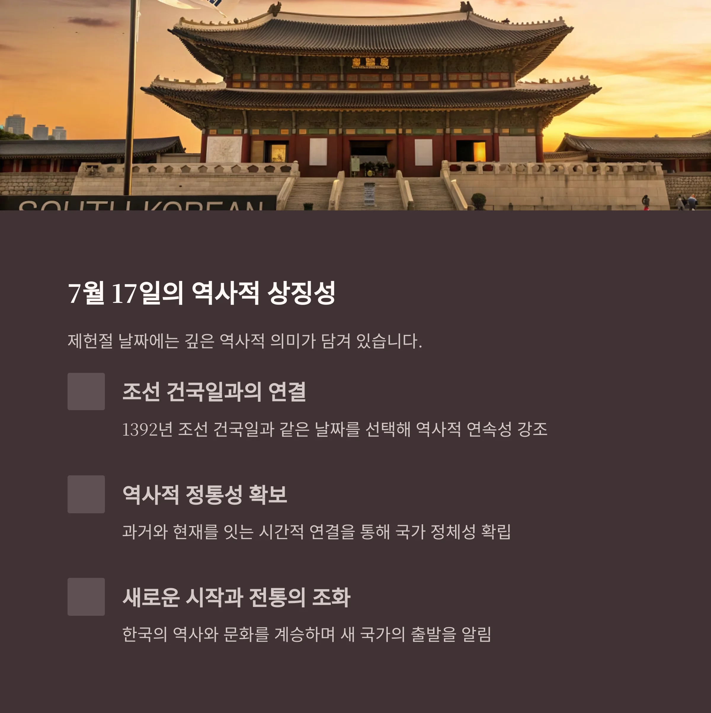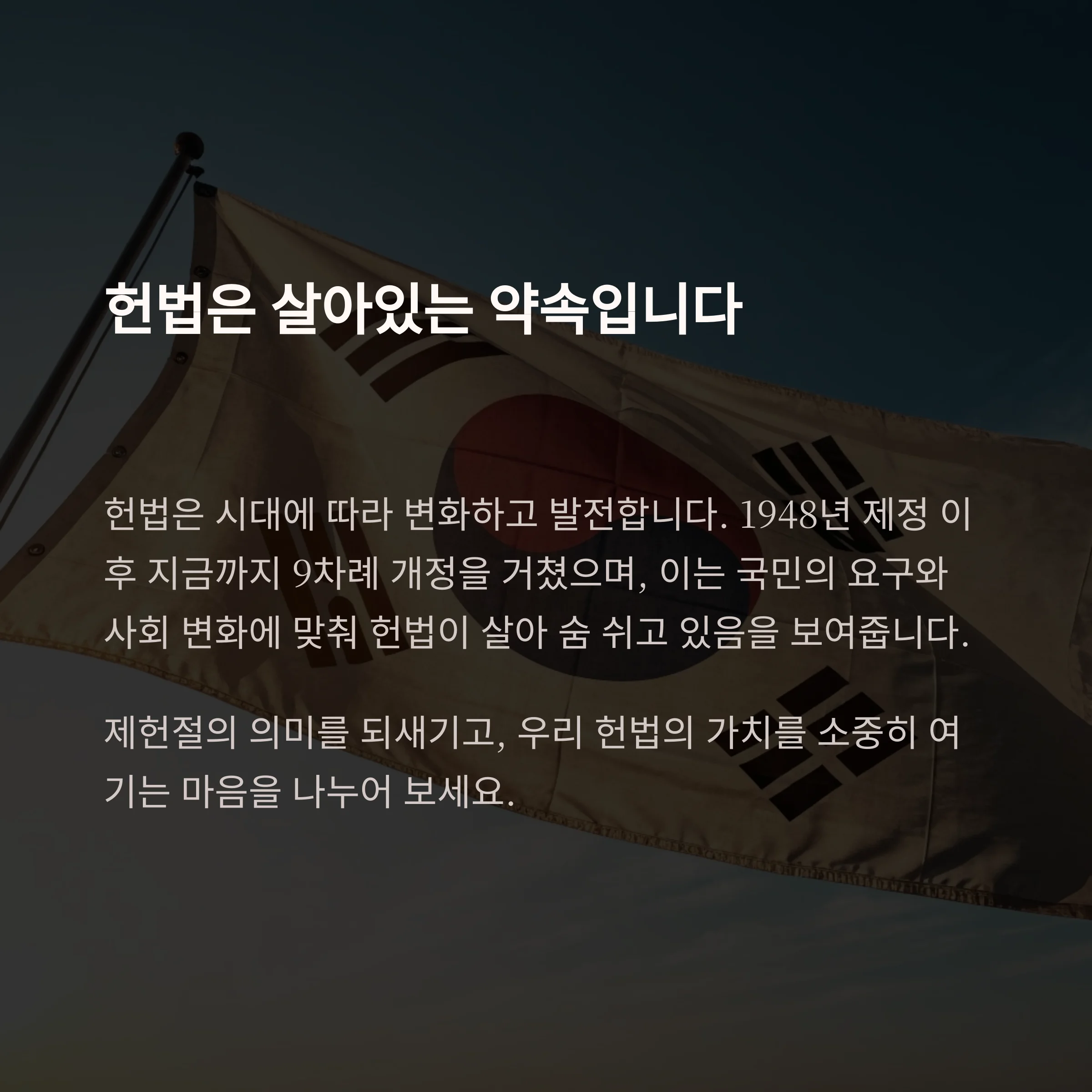 이날은 단순한 기념일이 아니라, 대한민국이 국민의 힘으로 법과 제도를 세우기 시작한 역사적인 날입니다.