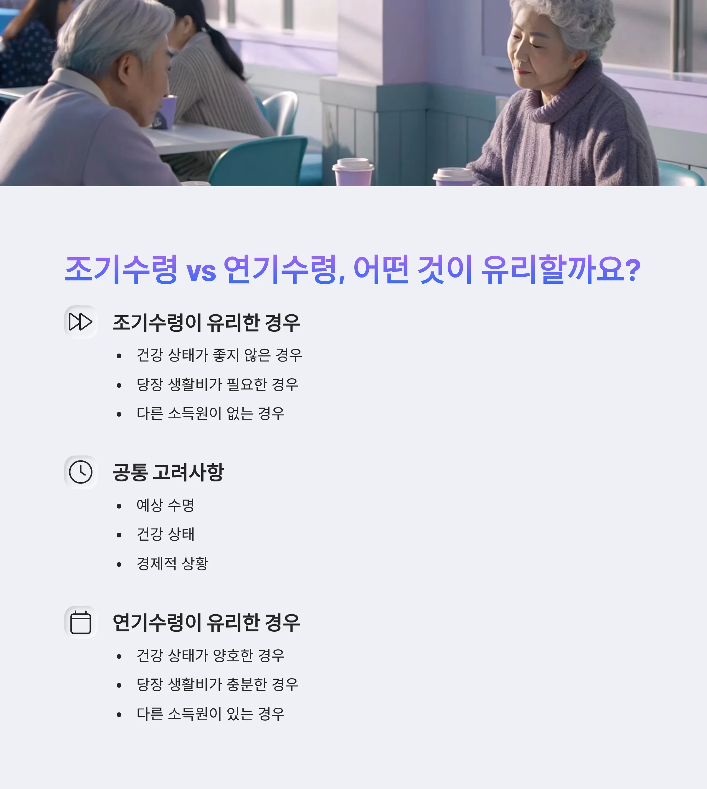 각 제도는 본인의 소득 및 건강, 노후계획에 맞게 신중하게 선택해야 합니다.