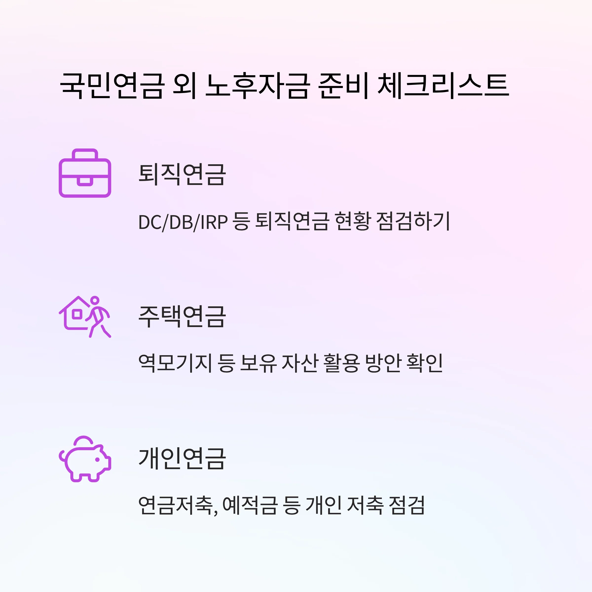 5. 국민연금 외 노후자금 준비 체크리스트
