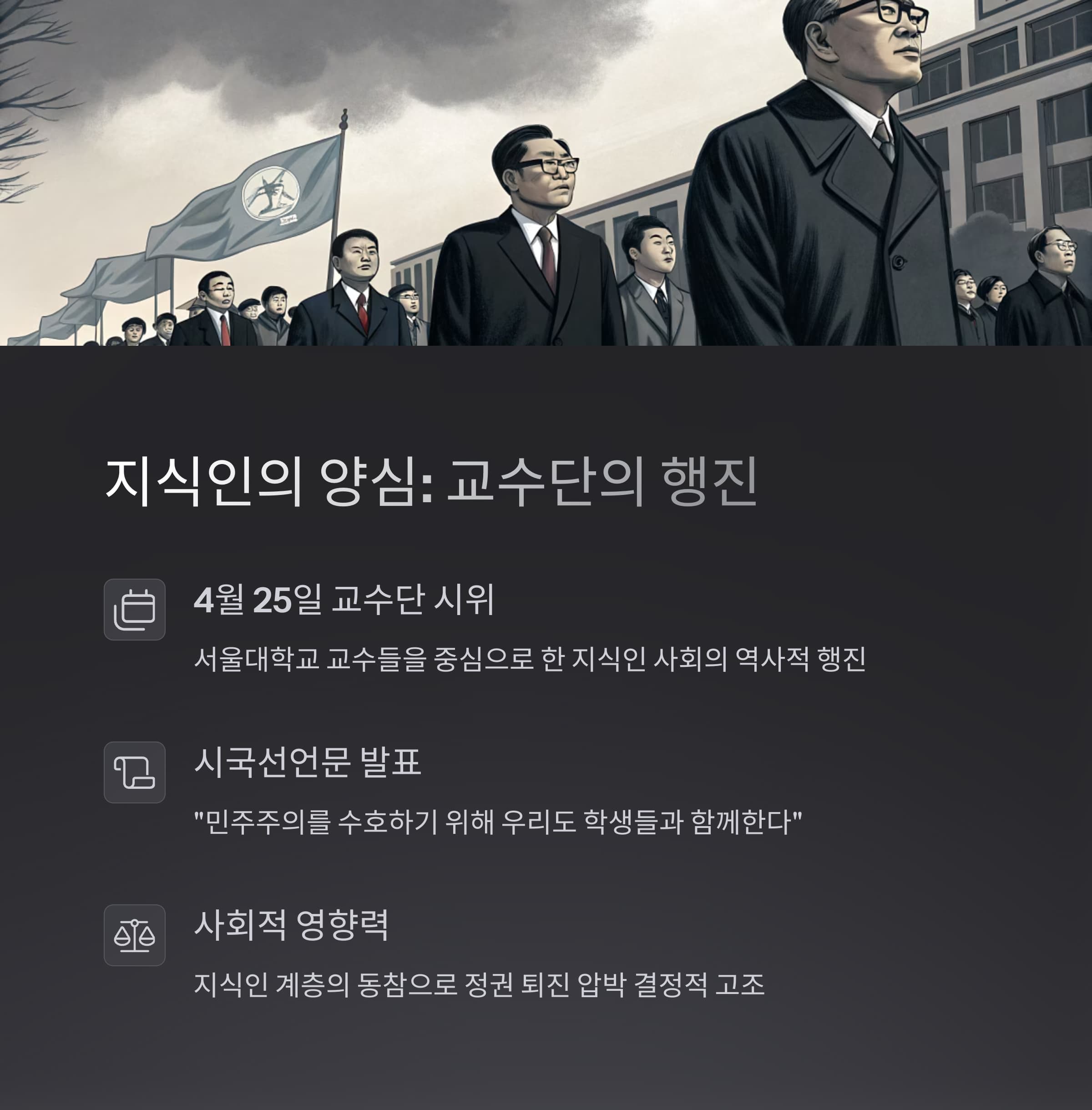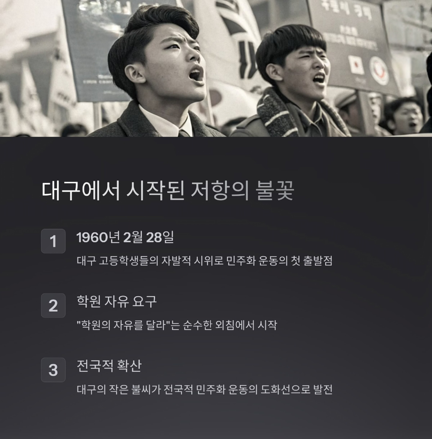 이름 없는 이들의 목소리가 대한민국을 움직였고, 그 외침은 오늘날까지 이어지고 있습니다. 역사는 기억하는 자의 것이며, 우리는 이들의 이름을 잊지 않고 다음 세대에게 전해야 합니다.
