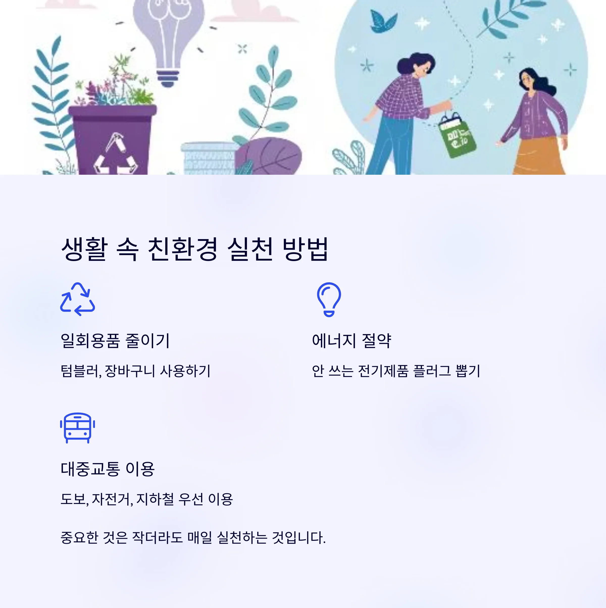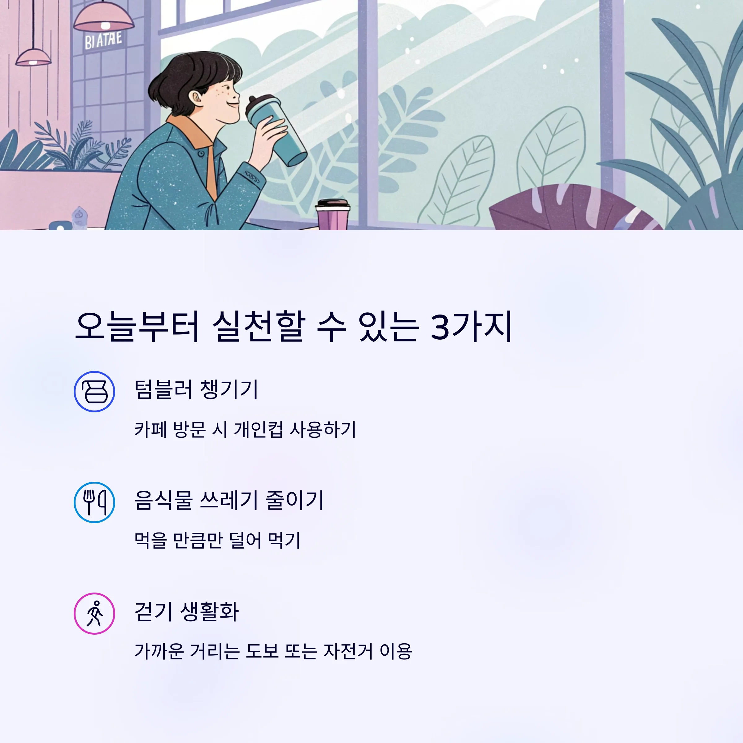 작은 행동이지만, 매일의 선택이 모이면 지구를 지키는 커다란 변화를 이끌 수 있습니다.